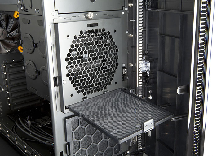To lessen vibration-related noise and maximize customization, the SOLO II offers a dual-mounting system for hard drives which gives the user the option of mounting HDDs using tray mounts with silicone grommets – suitable for 3.5” and 2.5” drives – or the tool-less suspension mounting system.
