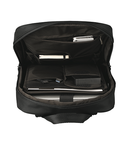 To complement the sleek design of the laptop bag, the LE rush backpack is finished with a support system molded from EVA (Ethylene-vinyl acetate) mesh fabric with air tunnels and a two inch adjustable metal buckle on the shoulder strap for comfort and style.